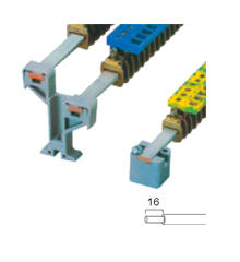 AK和AKG连接体端子(L/N/PE)连接体端子是设计成在固定通道安装上的端子, 装在3×10mm 和 6×6mm 的汇流条上,端子压块工作绝对可靠,螺栓不松动,还可以选择二种支撑件。